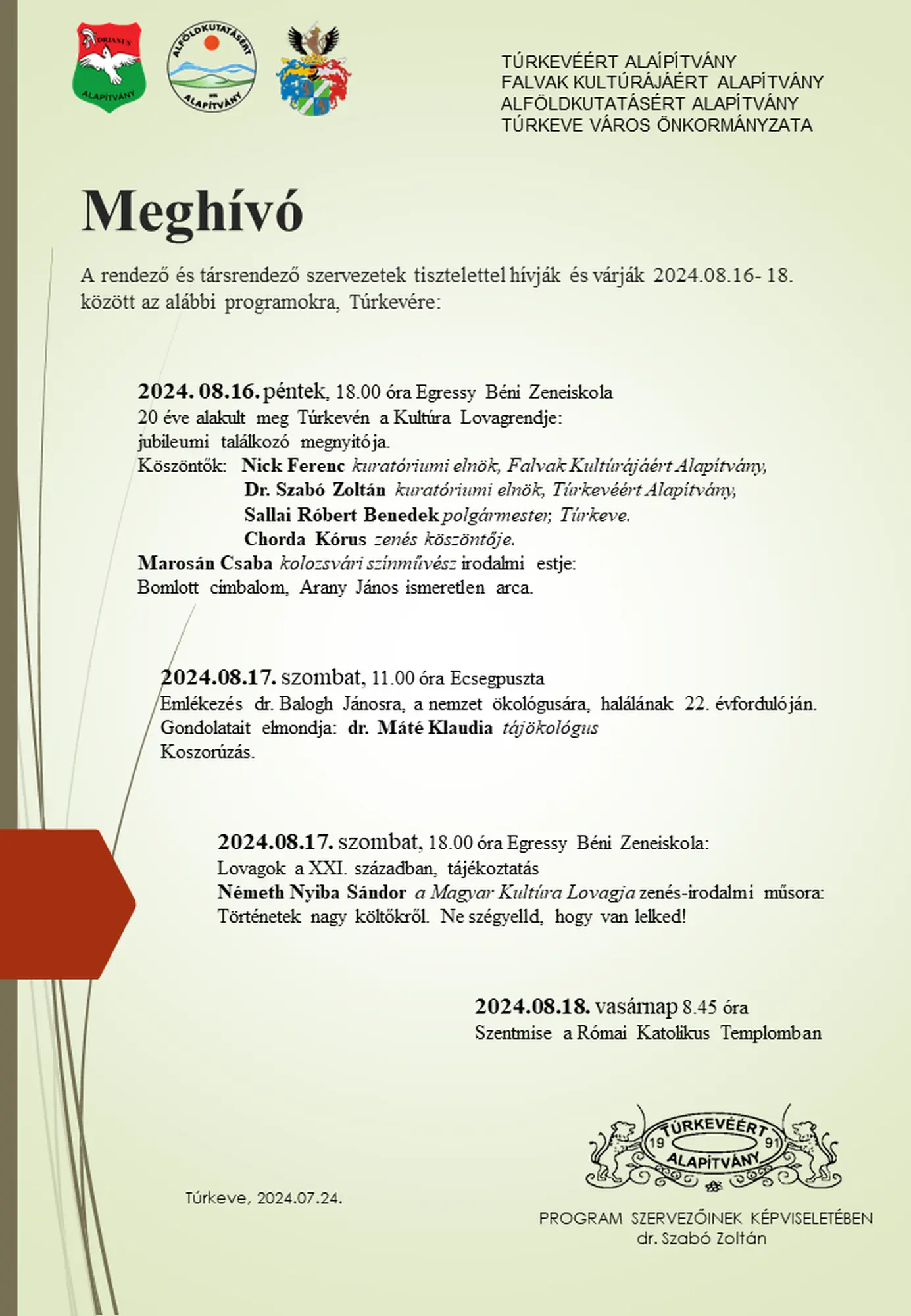 Lovagi találkozó 2024. augusztus 16. – 2024. augusztus 18.Meghívó